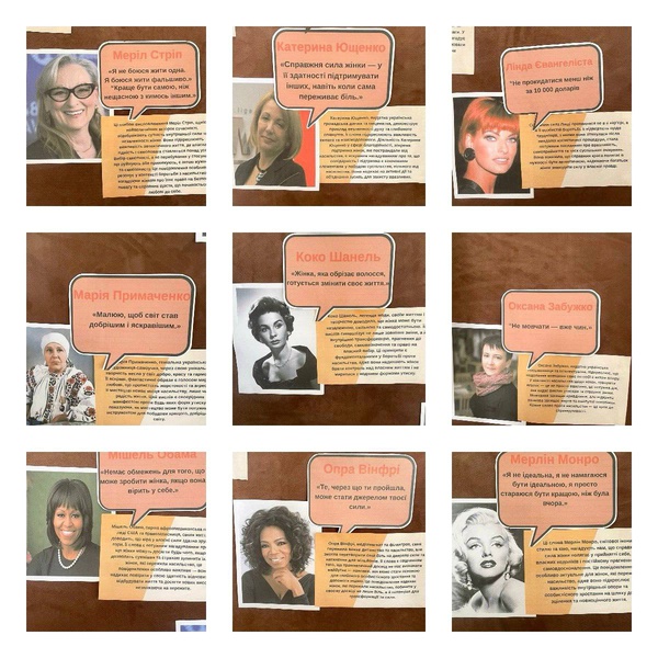 Ліна Костенко,Мішель Обама, Фріда Кало, Опра Вінфрі, Марія Примаченко, Меріл Стріп, Малала Юсафзай,Како Шанель,Катерина Ющенко, Мерлін Монро,Лінда Євангеліста, Бейонсе, Оксана Забужко, — їхні голоси звучать крізь час, надихаючи нас бути сміливими, наполегливими й незламними.